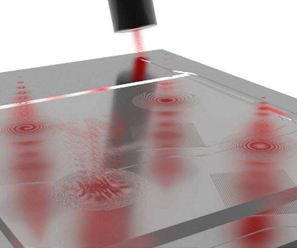使用这个平台,研究人员能够同时通过14个PIC衍射器传递光,并使用14个不同的元光学(如元透镜、涡旋束发生器、扩展焦深透镜和全息图)塑造相应束。